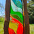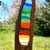 Auch hier, der rot glühende Erdkern, die grüne Vielfalt unserer Erde bis zum Blau des Himmels sind die Farben der Natur in Holz gerahmt.